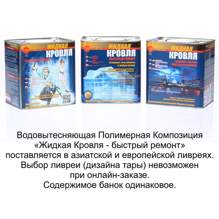 " Жидкая Кровля - быстрый ремонт " - всесезонная всепогодная Водовытесняющая Полимерная Композиция, специально разработанная для гидроизоляции крыши, строительства и ремонта кровли и устранения протечек крыши. Ремонт протечек и ремонт кровли можно проводить даже во время дождя и мокрого снега.